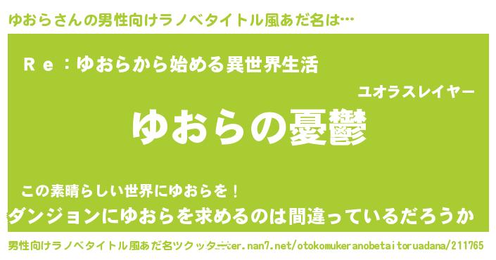 | 胡散臭い通販商品みたいなあだ名 | 『必ず成功する霊験あらたかなお札…その名も「ゆおら」』 |