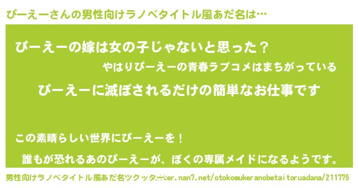 | 意味不明あだ名 | 『とにかく怪しいぴーえー』 |