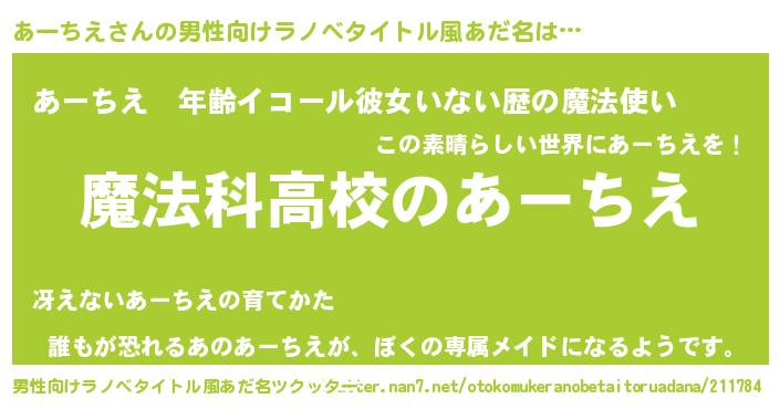 | 女子向けラノベタイトル風あだ名 | 『あーちえなんてお断りですっ。』 |