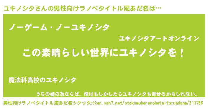 | 意味不明あだ名 | 『住所不定無職ユキノシタ(6歳)』 |
