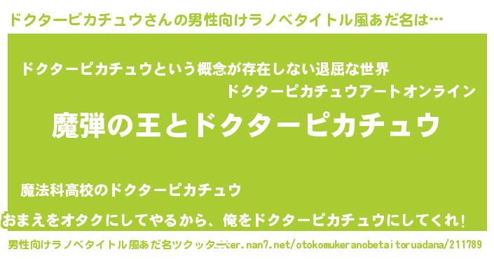 | 女子向けラノベタイトル風あだ名 | 『乙女ゲームの破滅フラグしかない悪役ドクターピカチュウに転生してしまった…』 |