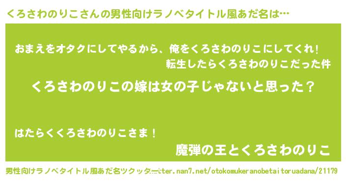| 女子向けラノベタイトル風あだ名 | 『くろさわのりこの卵を拾いまして』 |