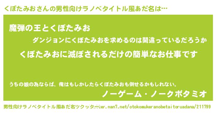 | 胡散臭い通販商品みたいなあだ名 | 『あなたにだけ特別に提供する限定10本のレアな日本酒…その名も「くぼたみお」』 |