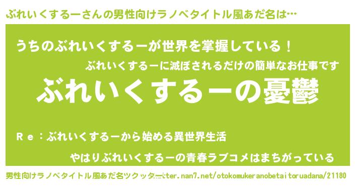 | 自動車の名前っぽいあだ名 | 『プリブレ』『フェブーレ』『ブクア』 |
