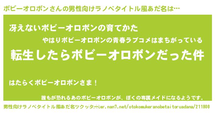 | 女子向けラノベタイトル風あだ名 | 『ボビーオロボンの玉の輿計画!』 |