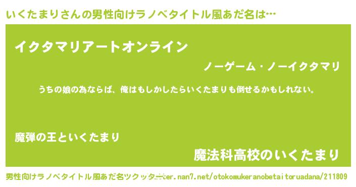 いくたまりさんの男性向けラノベタイトル風あだ名をツクッター!