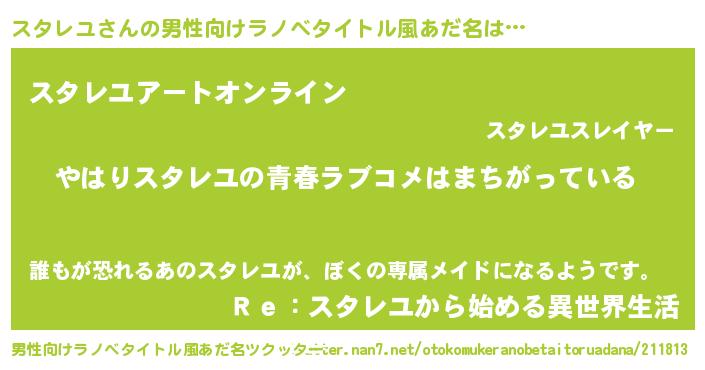 | 意味不明あだ名 | 『スタレユフォーエバー』『自称スタレユ』 |