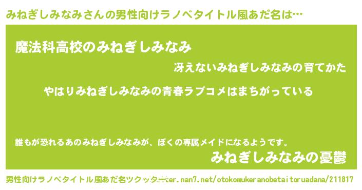 | 意味不明あだ名 | 『みねぎしみなみフォーエバー』 |