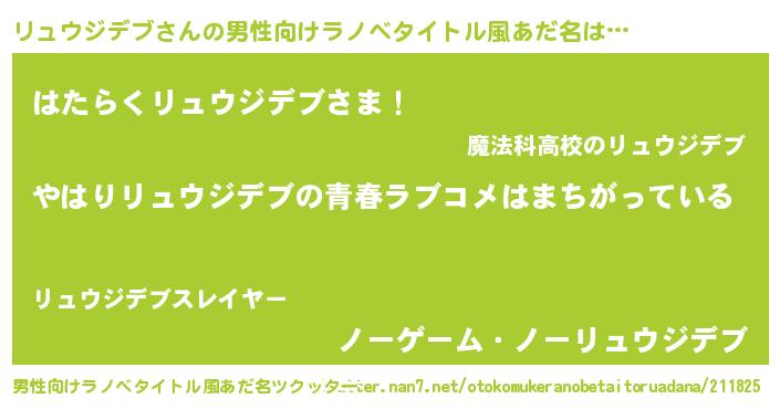 | 女子向けラノベタイトル風あだ名 | 『リュウジデブの雑貨屋さん』 |