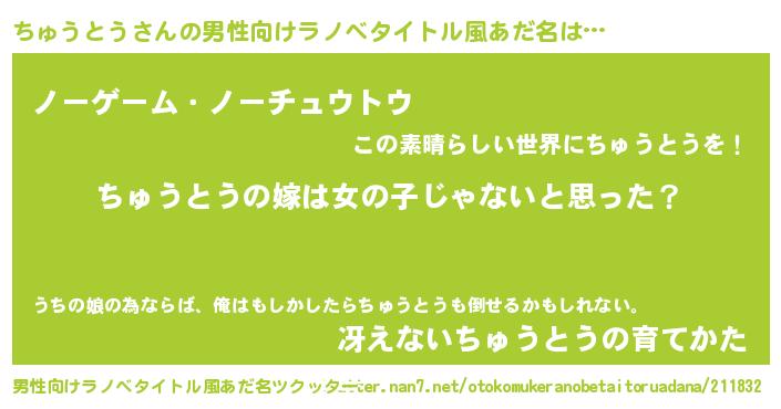 | 女子向けラノベタイトル風あだ名 | 『ちゅうとう様がみてる』 |