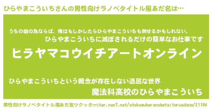 | 胡散臭い通販商品みたいなあだ名 | 『億万長者になれる水晶球…その名も「ひらやまこういち」』 |
