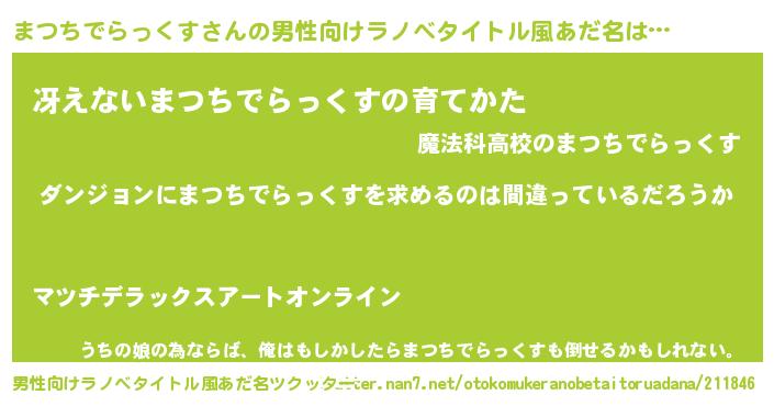 | 胡散臭い通販商品みたいなあだ名 | 『信頼と実績のペンダント…その名も「まつちでらっくす」』 |