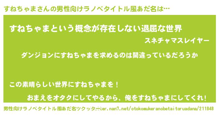 | 意味不明あだ名 | 『とにかく怪しいすねちゃま』 |