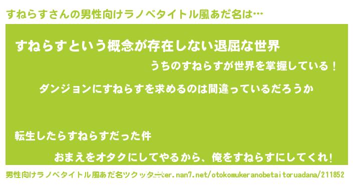| 女子向けラノベタイトル風あだ名 | 『すねらすの卵を拾いまして』 |