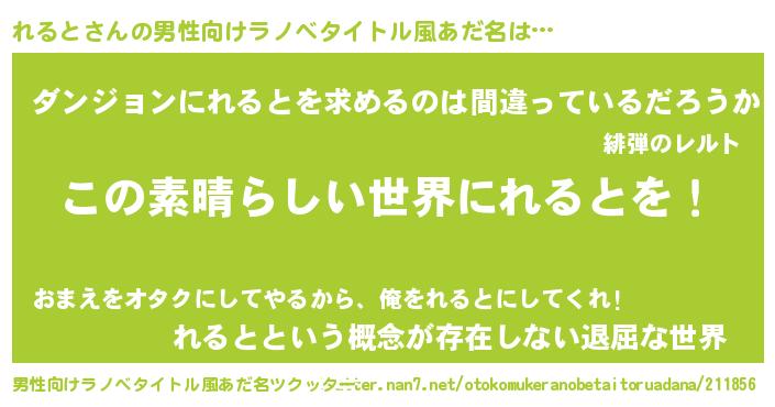 | 女子向けラノベタイトル風あだ名 | 『悪役れるとに転生したようですが、知った事ではありません』 |