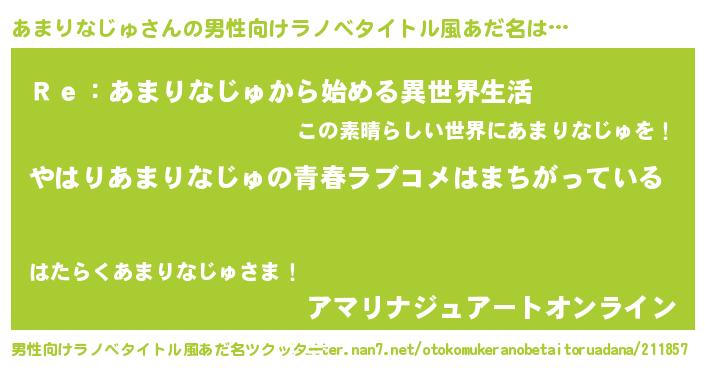 | 女子向けラノベタイトル風あだ名 | 『あまりなじゅの雑貨屋さん』 |