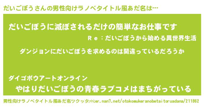 | ヒーロー風カッコイイあだ名 | 『黄金騎士ダイ』『スーパーダイゴボウ』 |
