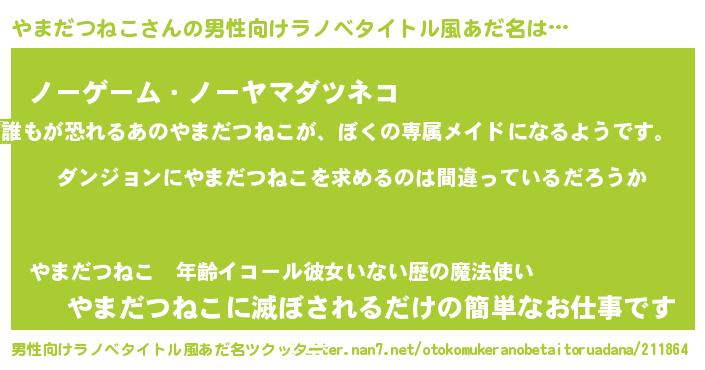| 女子向けラノベタイトル風あだ名 | 『やまだつねこは平凡を望む』 |