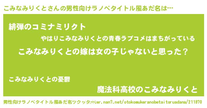 | 女子向けラノベタイトル風あだ名 | 『こみなみりくと様がみてる』 |