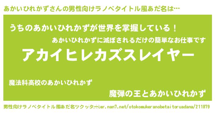 | ヒーロー風カッコイイあだ名 | 『仮面アカダー』『炎刃騎士アカ』 |
