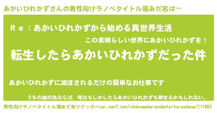 | 女子向けラノベタイトル風あだ名 | 『あかいひれかずの玉の輿計画!』 |