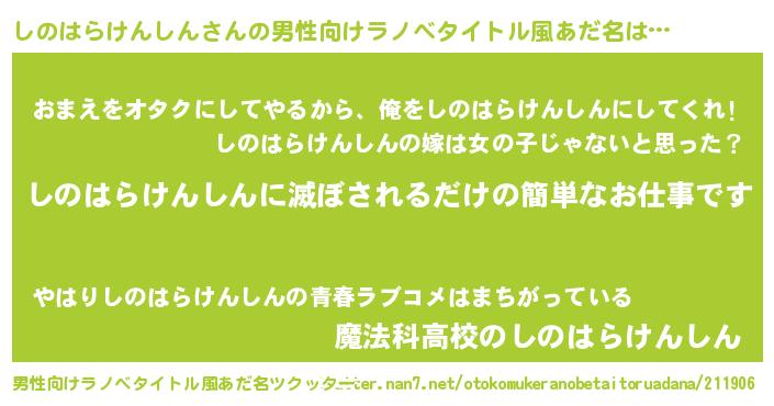 | 胡散臭い通販商品みたいなあだ名 | 『モンドセレクションを受賞した隕石のかけら…その名も「しのはらけんしん」』 |