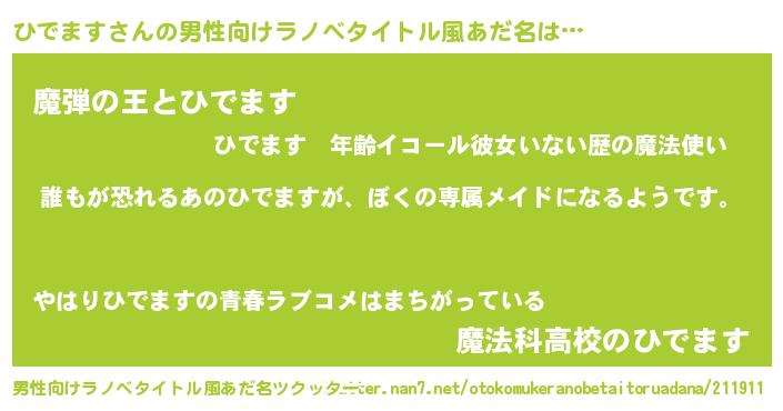 | 胡散臭い通販商品みたいなあだ名 | 『来世でも幸せになれる水素水…その名も「ひでます」』 |