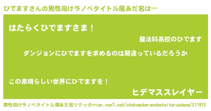 | 胡散臭い通販商品みたいなあだ名 | 『伝統あるサプリメント…その名も「ひでます」』 |