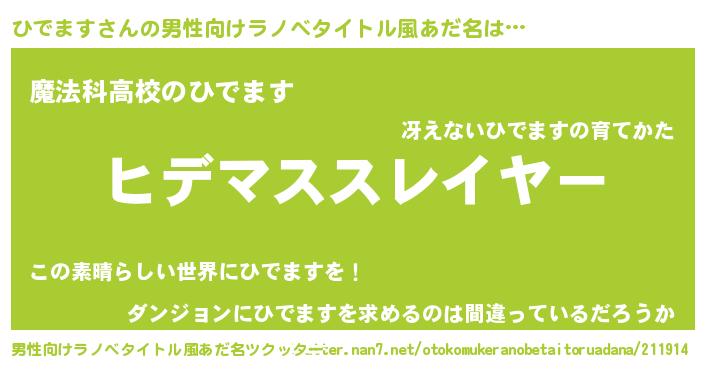 | 女子向けラノベタイトル風あだ名 | 『婚約破棄系悪役ひでますに転生したので、保身に走りました。』 |