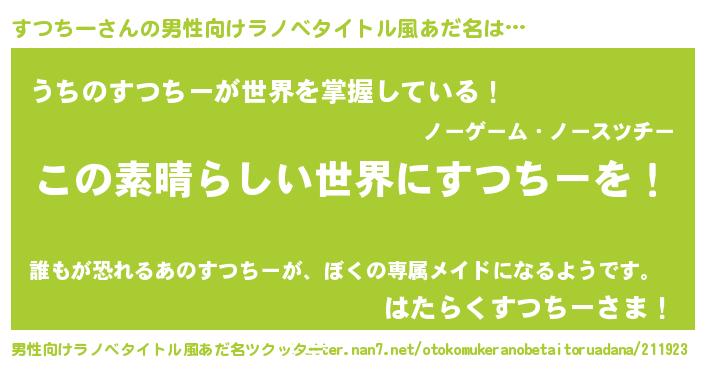 | 意味不明あだ名 | 『住所不定無職すつちー(9歳)』 |