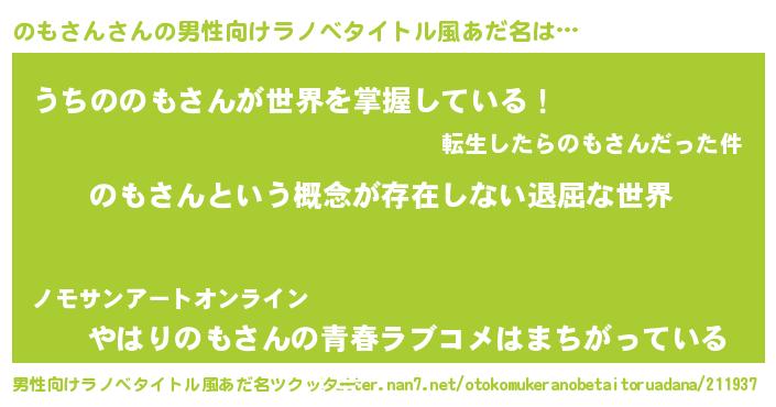 | ヘコむあだ名 | 『のもさん(小並感)』『つくし』 |