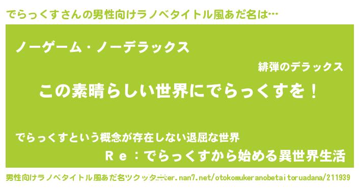 でらっくすさんの男性向けラノベタイトル風あだ名をツクッター!