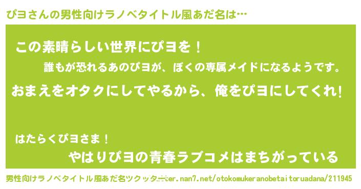 | 料理風あだ名 | 『ぴヨのトマト煮』『栗とぴヨのマフィン』 |