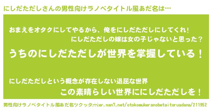 | ヒーロー風カッコイイあだ名 | 『慈愛の使者にしだただし』 |