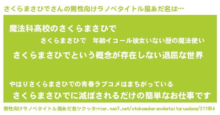 | ヒーロー風カッコイイあだ名 | 『ネオサクラマサヒデ』『天弓騎士サク』 |