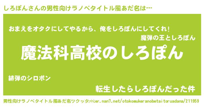 | 女子向けラノベタイトル風あだ名 | 『しろぽんアンティーク』 |