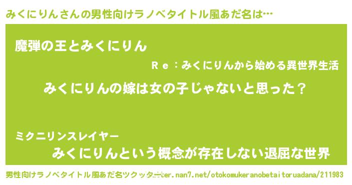 | 胡散臭い通販商品みたいなあだ名 | 『全米が絶賛したサプリメント…その名も「みくにりん」』 |