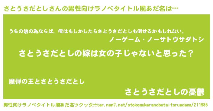 | 意味不明あだ名 | 『とにかく怪しいさとうさだとし』 |