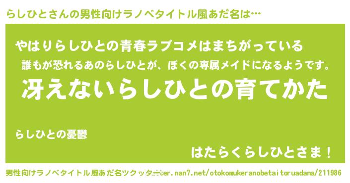 | ヒーロー風カッコイイあだ名 | 『ウルトラらしひとマン』『ネオラシヒト』 |