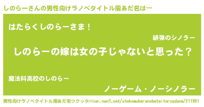 | 女子向けラノベタイトル風あだ名 | 『しのらー様がみてる』 |