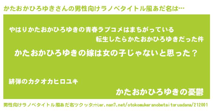 | ポケモン風あだ名 | 『ヒカタオカヒロユキ』『カタオダネ』 |