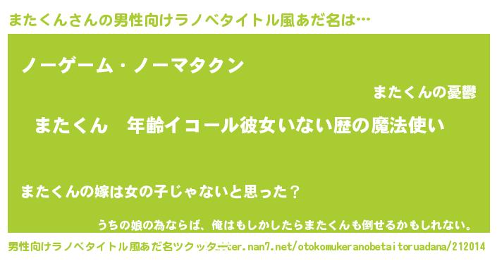 またくんさんの男性向けラノベタイトル風あだ名をツクッター!