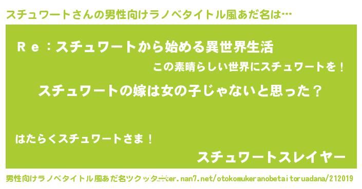 | 女子向けラノベタイトル風あだ名 | 『スチュワート様がみてる』 |
