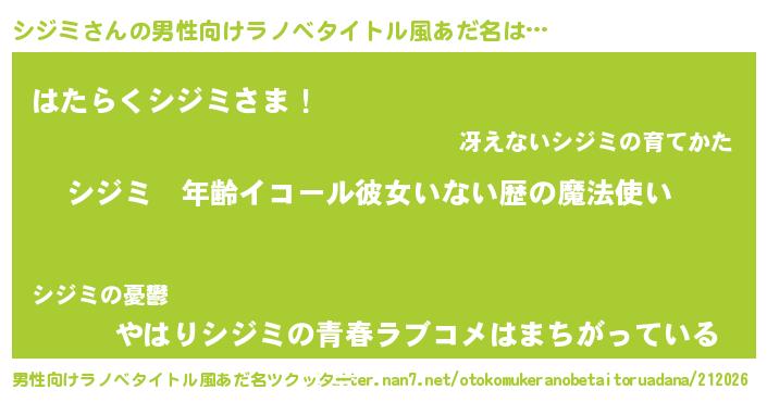 | 女子向けラノベタイトル風あだ名 | 『シジミの玉の輿計画!』 |