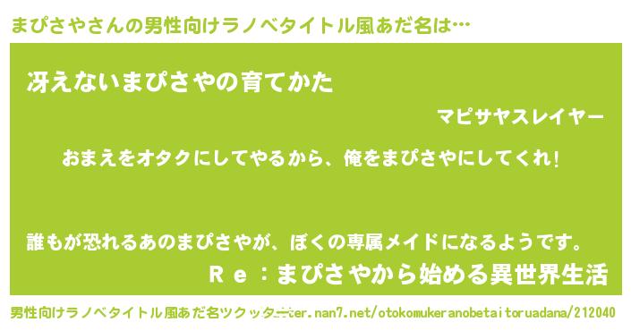 | 女子向けラノベタイトル風あだ名 | 『まぴさや夫妻のなれそめ』 |