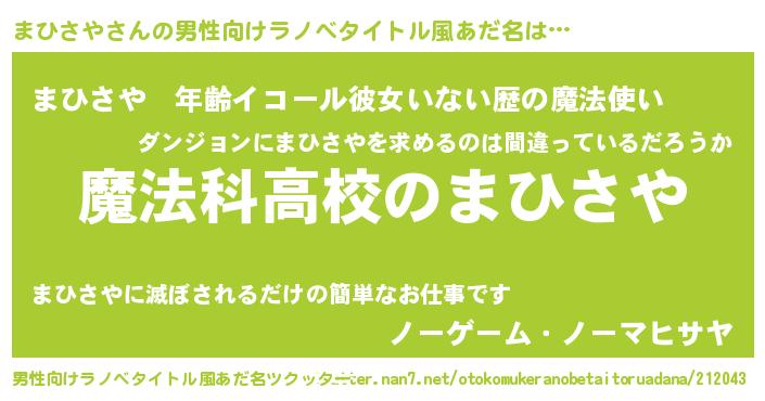 | 女子向けラノベタイトル風あだ名 | 『まひさやアンティーク』 |