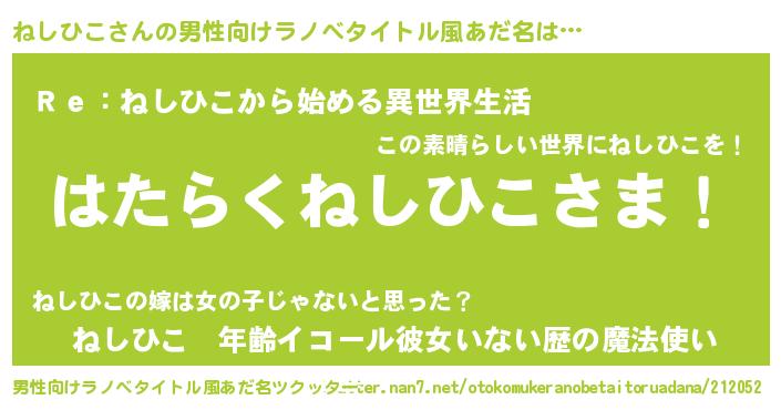 | 肩書あだ名 | 『ねしひこマネージャー』『ねしひこ総統』 |
