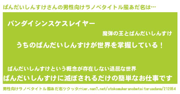 | 女子向けラノベタイトル風あだ名 | 『男装ばんだいしんすけの憂鬱な任務』 |
