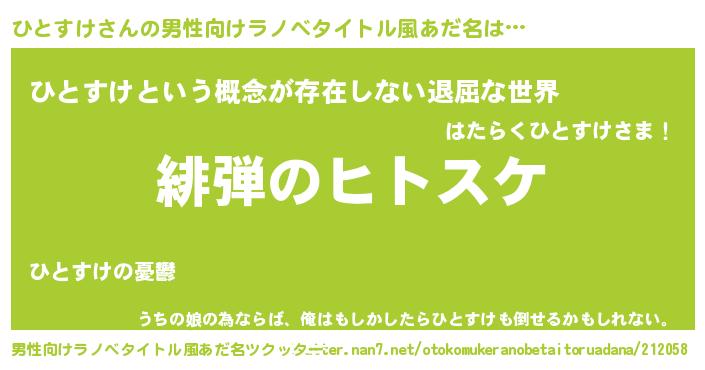 | 胡散臭い通販商品みたいなあだ名 | 『絶対に幸福をもたらす水素水…その名も「ひとすけ」』 |
