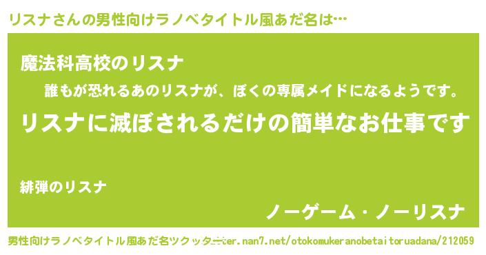 | ヒーロー風カッコイイあだ名 | 『最強戦士リスナ』『慈愛の使者リスナ』 |